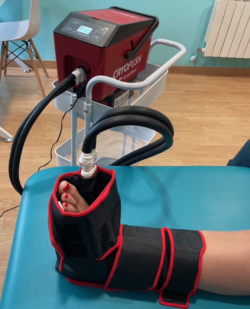 Cryopush es un tratamiento que combina crioterapia (frío controlado) y compresión neumática intermitente, diseñado para reducir la inflamación, aliviar el dolor y acelerar la recuperación tras lesiones o esfuerzos físicos intensos.